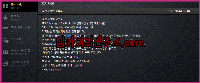 엠카지노에서 제공하는 공식 제휴 커뮤니티에서는 엠카지노와 관련된 게임정보와 공지 사항등만을 제공하고 있습니다.